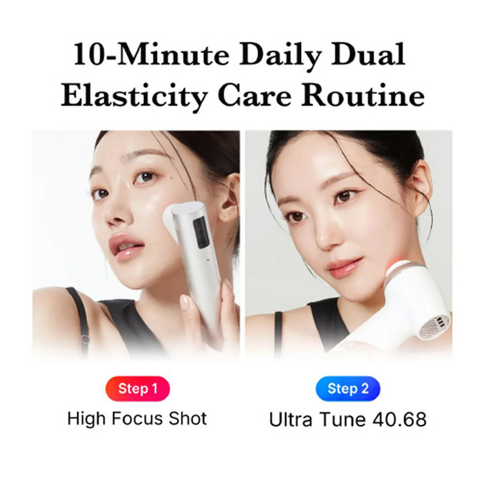 Ein Anti-Aging-Gerät für zu Hause, das mit hochintensivem fokussiertem Ultraschall (HIFU) auf die tieferen Hautschichten einwirkt, um die Festigkeit der Haut zu verbessern und das Erscheinungsbild feiner Linien zu reduzieren. Es wurde für die einfache, praktische Anwendung zu Hause entwickelt und ist für alle Hauttypen geeignet, auch für empfindliche Haut.