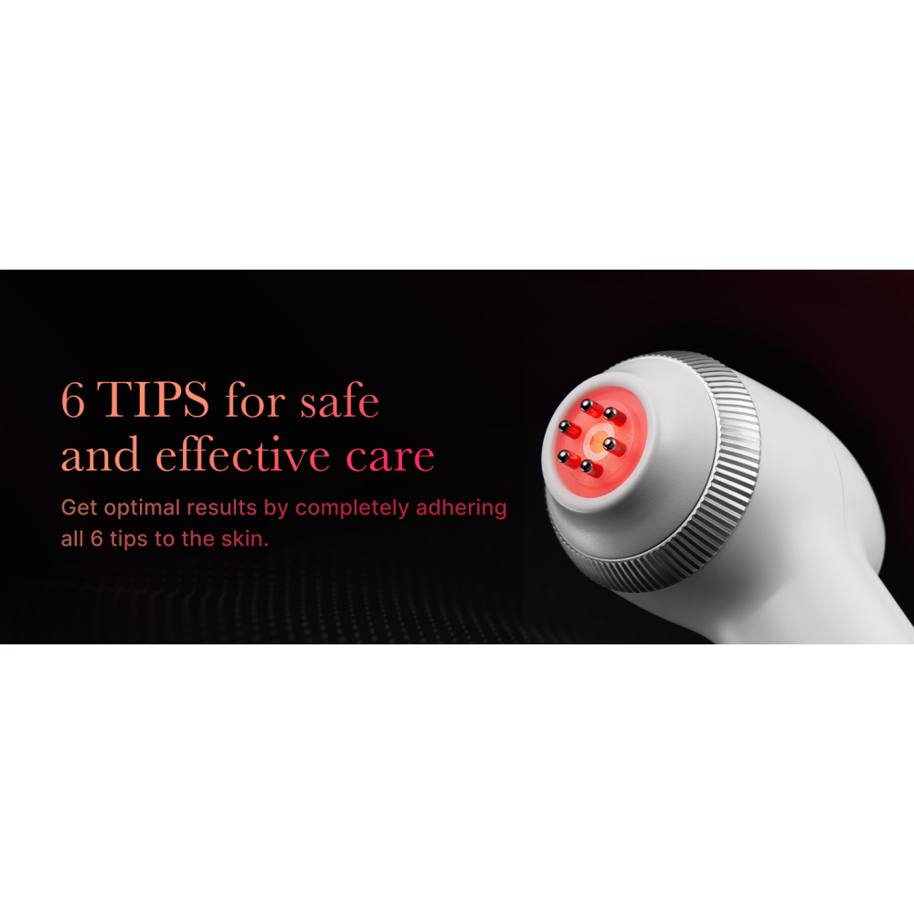 - Funktioniert nur, wenn alle sechs Spitzen die Haut berühren, um eine sichere Anwendung zu gewährleisten