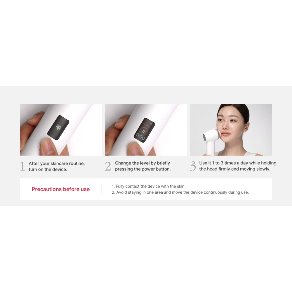 - RF (Radiofrequenz): Liefert sanfte Wärmeenergie, um die Haut sichtbar zu straffen und ihre Elastizität zu verbessern.