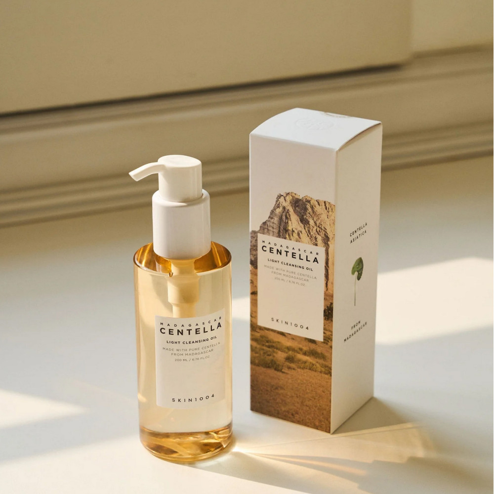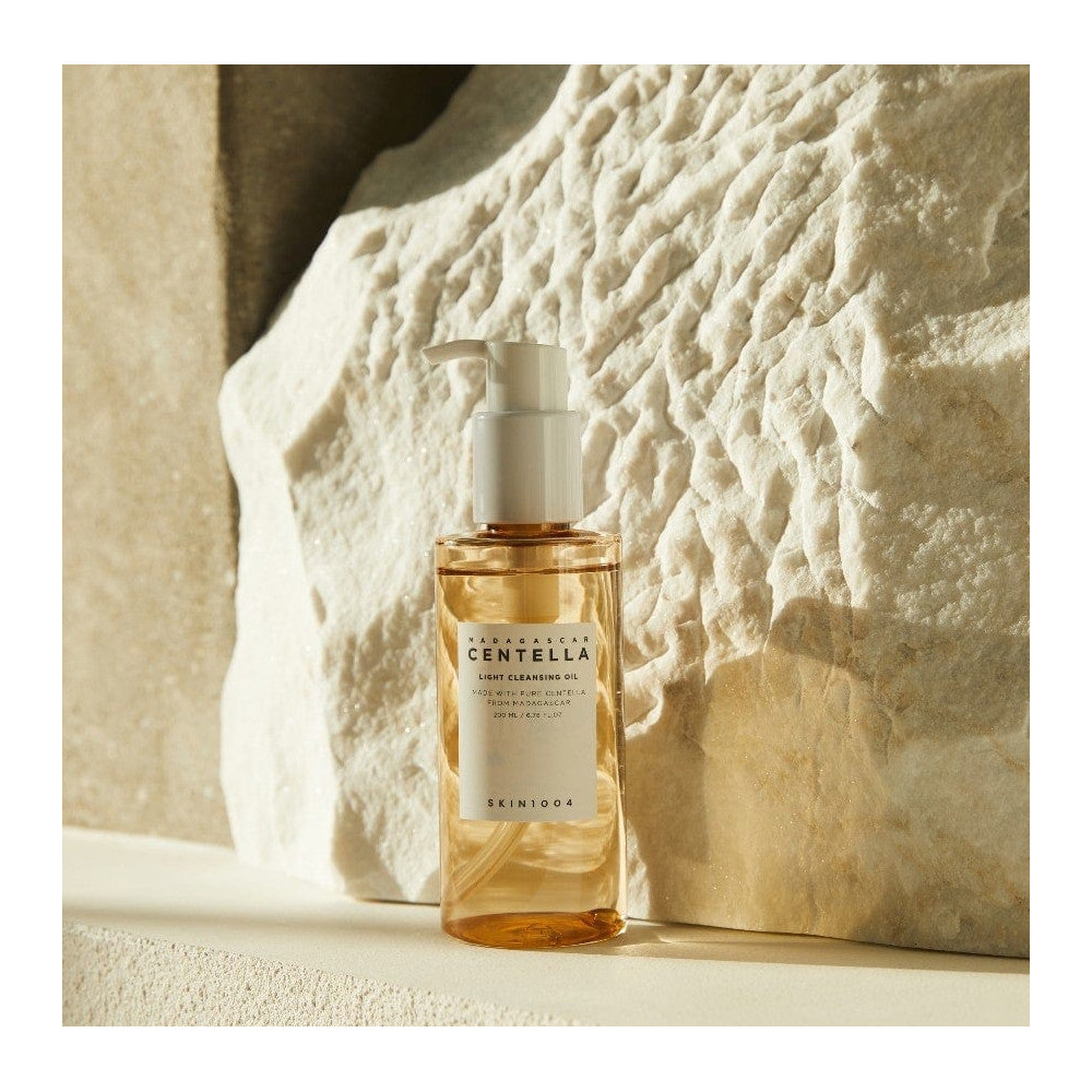 Entdecken Sie die transformative Kraft des Skin1004 Madagascar Centella Light Cleansing Oil - ein sanftes, ölbasiertes Reinigungsmittel, das Make-up, Sonnenschutzmittel und überschüssigen Talg entfernt und gleichzeitig die natürliche Feuchtigkeitsbalance Ihrer Haut erhält.