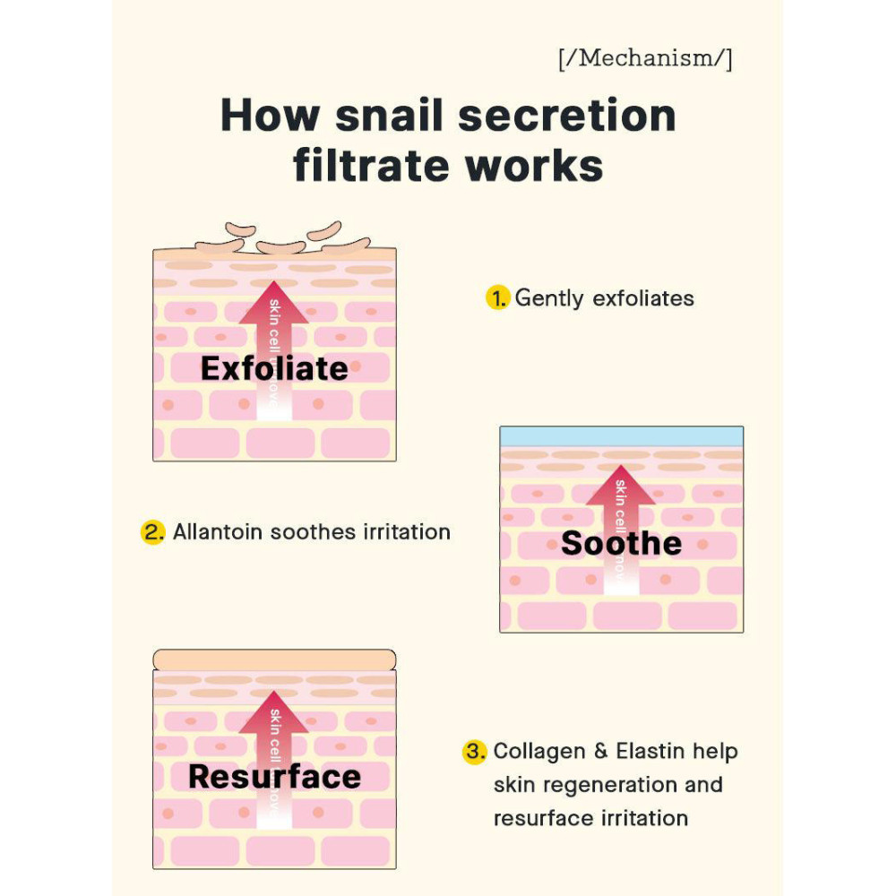 Diese schnell einziehende Essenz liefert 96% Schneckensekret-Filtrat, um die Haut mit Feuchtigkeit zu versorgen, die Hautreparatur zu unterstützen und die allgemeine Ausstrahlung zu verbessern, ohne zu kleben.