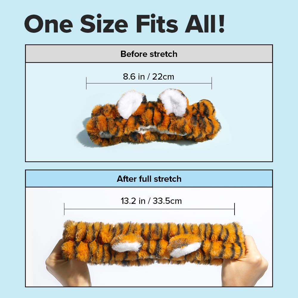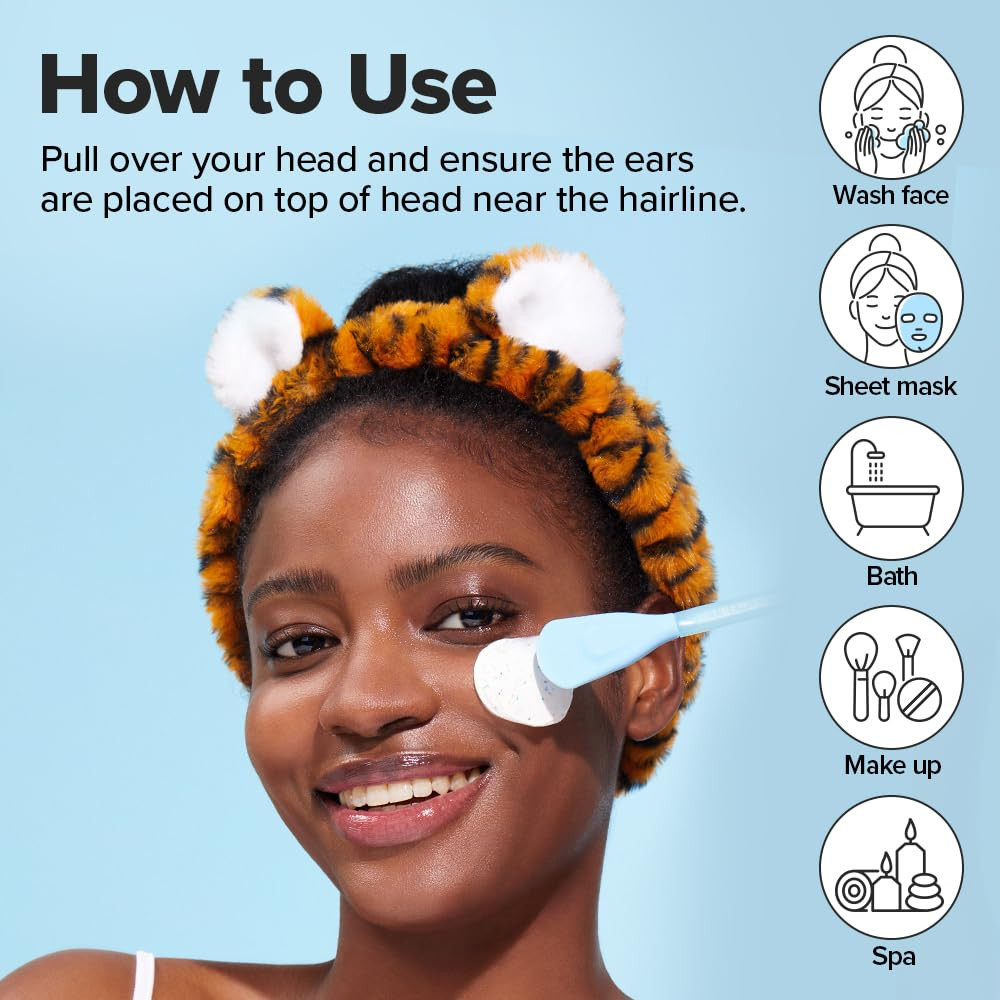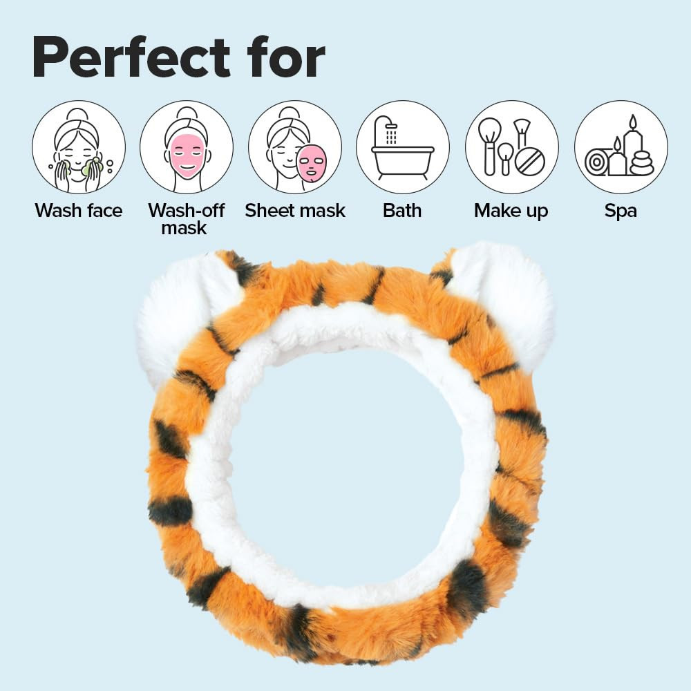 Superweiches Tiger-Stirnband, das die Haare während der Reinigung, Hautpflege oder des Make-ups zurückhält - bequem, wiederverwendbar und ein absolutes K-Beauty-Accessoire zum Verschenken.